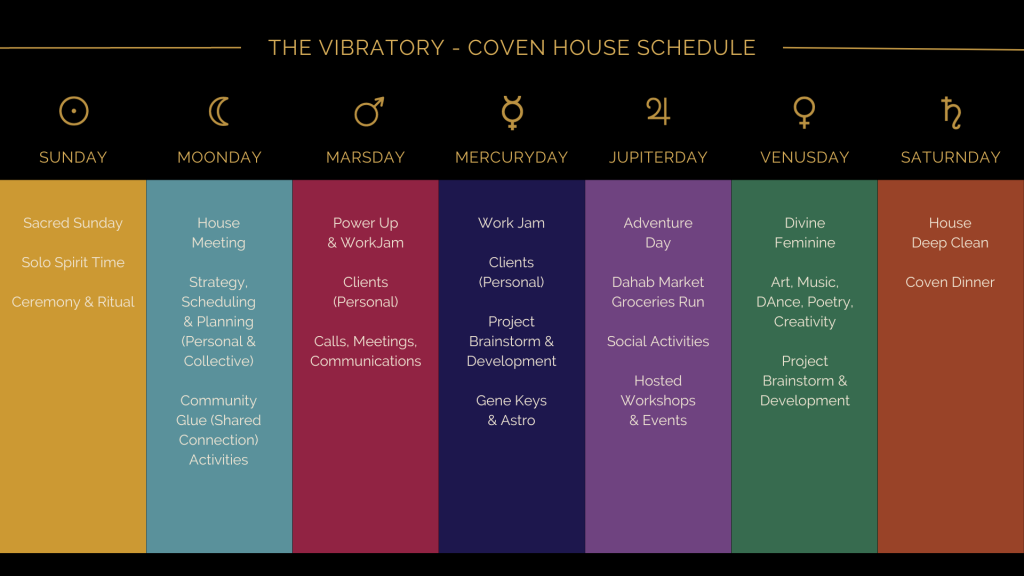 A fundamental aspect of returning to symbiotic co-creation with the Earth and Cosmos is returning to living according to a natural timing frequency. We facilitate this transition by offering education and coaching in various ancient and alternative calendar systems, helping you to choose what feels most aligned for your Coven.